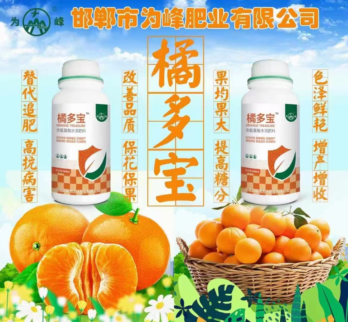 橘多寶為峰肥業(yè)柑橘專用葉面肥橘樹肥2024-08-12葉面肥廠家為峰肥業(yè)橘多寶?橙柚